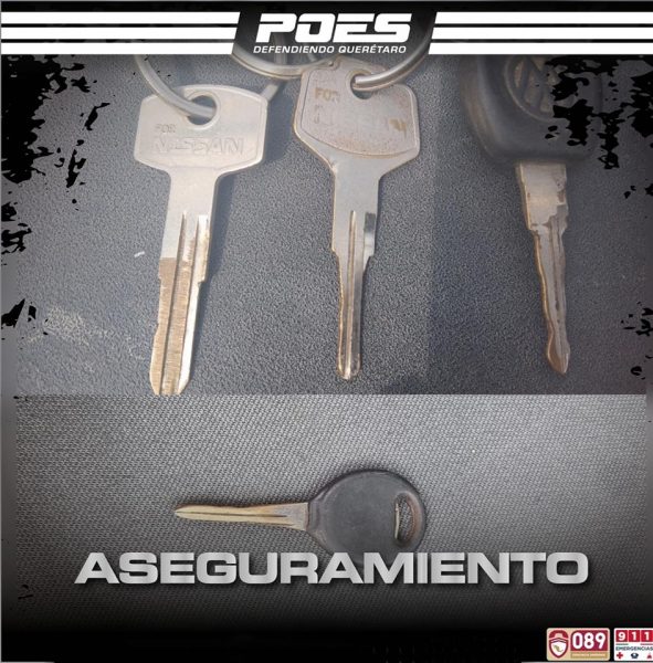 La detención ocurrió luego de que los dos individuos fueron detectado al mostrar comportamientos evasivos, por lo que después de una revisión, se les localizaron cuatro llaves con desgaste de diferentes tipos (limadas), las cuales comúnmente son usadas para delinquir.