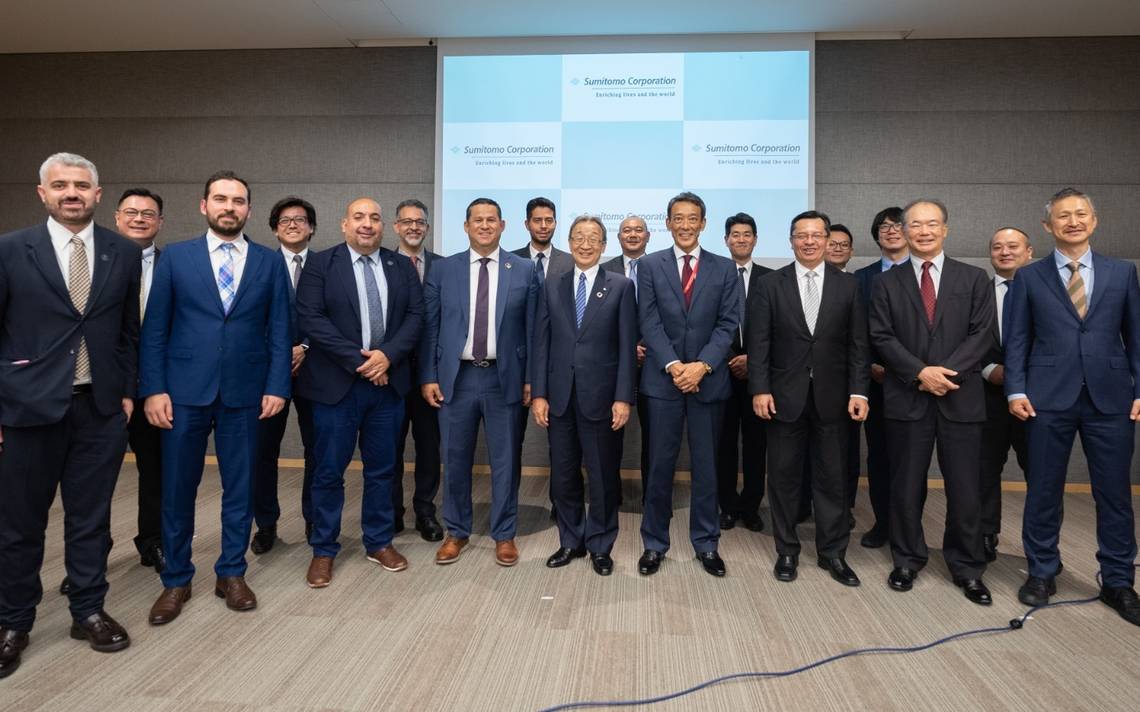 Diego Sinhue Rodríguez Vallejo asistió al Departamento de Innovación de la Oficina Central de la Corporación Sumitomo, en donde dialogó con Okuni Yujiro, gerente general de Agroinnovación, y Nagaoka Hideyuki, gerente de Negocios de Movilidad, con el objetivo de conocer prácticas que mejoren la agricultura sustentable mediante el uso de tecnologías inteligentes y limpias.