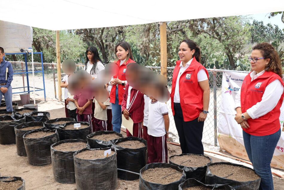 SLP.- En una de las comunidades más alejadas de la Capital Potosina, Terrones Sangre de Cristo, ubicada en la delegación de Bocas, se instaló el huerto número 15 del programa “Cosechando para tu mesa” en la Escuela Primaria Municipal «Josefa Ortiz de Domínguez», donde participan madres y padres de familia, así como el alumnado y docentes.