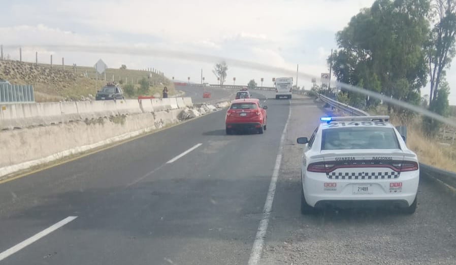 Policías de Guardia Nacional División Carreteras Destacamento Estado de México, tomaron el parte del hecho, después de controlada la situación, ordenaron que en una grúa fuera trasladada la camioneta accidentada a un lugar seguro.