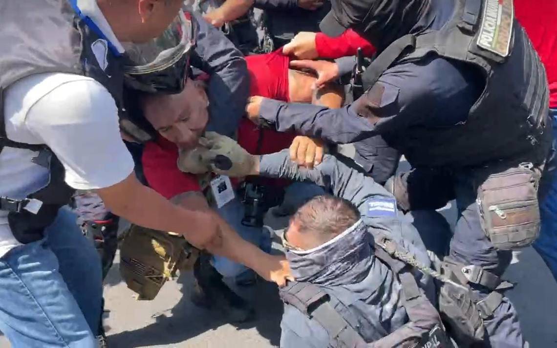 El fotorreportero de esta casa editorial realizaba la cobertura de las detenciones cuando sufrió una primera agresión, en donde policías impedían que siguiera tomando fotos y para ello con empellones y hasta codazos lo retiraban del lugar.