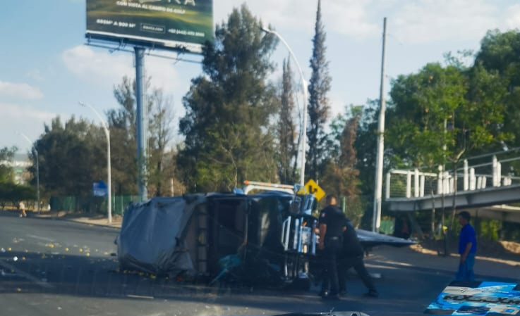 En hora pico, un automovilista huyó tras ocasionar una carambola y volcadura, en carriles centrales del boulevard Bernardo Quintana, a la altura del puente peatonal en la colonia Arquitos, en el municipio de Querétaro.