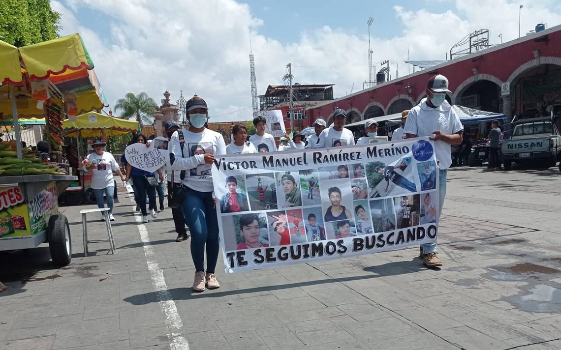 Unas 300 personas, portando playeras con fotografías de sus familiares, hombres y mujeres, no localizados, además de pancartas, lonas e incluso retratos, salieron del COMUDE por la mañana y recorrieron la calle Isabel la Católica, Hidalgo y otras vialidades, apoyadas por una unidad de Vialidad y una ambulancia, gritando consignas sobre la búsqueda de sus hijos, padres, hermanos.