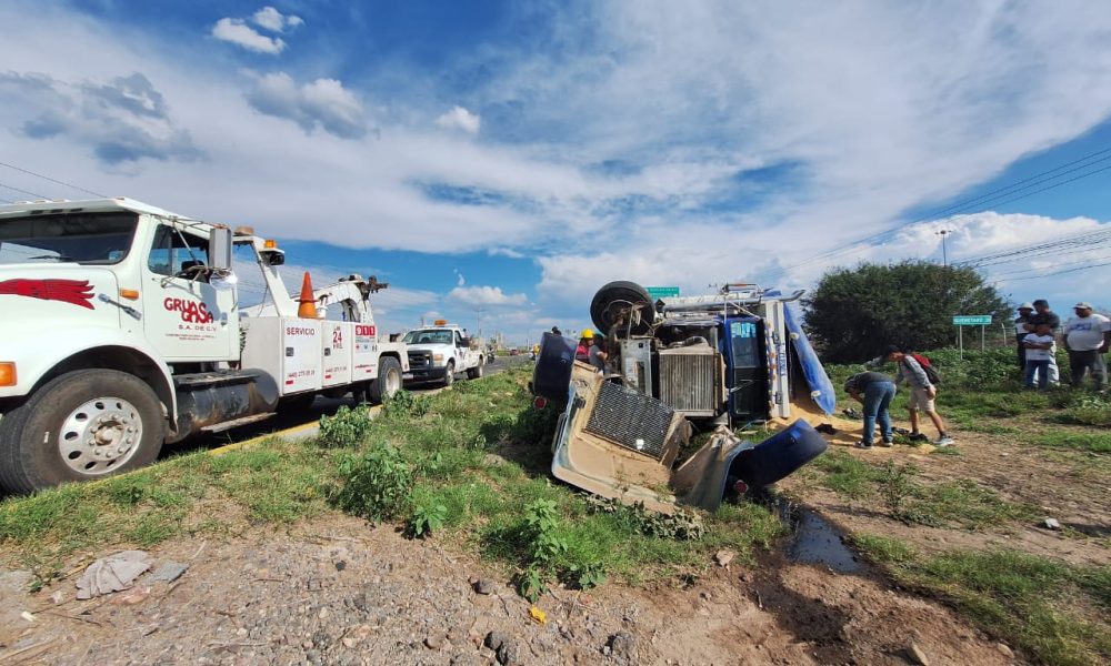 La vialidad se vio afectada en tanto se realizaban los trabajos de limpieza y maniobras para el retiro del pesado vehículo y su carga, la cual quedó regada sobre la arteria estatal.