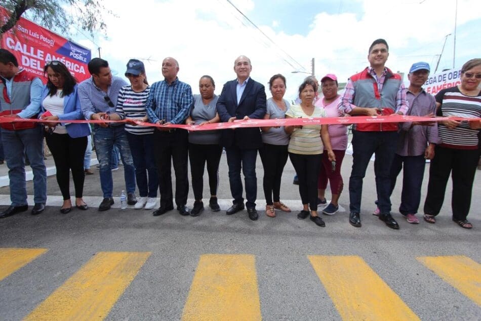 “Las obras entregadas con el programa ‘Vialidades PotoSÍnas’ resuelven varios problemas, porque atienden las peticiones no sólo de nuevas pavimentaciones, sino se modernizan tomas de agua potable, drenajes y se mejora la calidad de vida de las potosinas y potosinos”, dijo el Alcalde Enrique Galindo Ceballos, al inaugurar la calle América del Norte, en el tramo de República de Cuba a República Dominicana, en la que se colocaron mil 900 metros cuadrados de carpeta asfáltica. Reconoció que antes, dicha arteria era solamente terracería, “sin embargo, cuando intervenimos de manera integral una avenida o calle de colonia, tiene un impacto directo en la población, por eso, en este segundo semestre se continuará con este gran programa municipal para seguir con las pavimentaciones o repavimentaciones en la ciudad, las que cambian de manera sustancial el entorno, por eso seguiremos con este compromiso y no les vamos a fallar”.