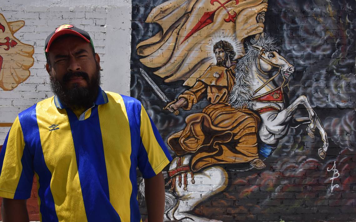 El artista explicó que el mural estará compuesto por las siguientes imágenes: “Una será de Santiago Apóstol con su caballo que medirá 3 metros de alto X 2 metros de ancho. También haré otra de Santiaguito en blanco y negro de 2.4 centímetros de alto por 4 centímetros de ancho, en esta estará el santo, a un lado la torre del templo, el escudo, la concha y la cruz de Santiago de Compostela”.