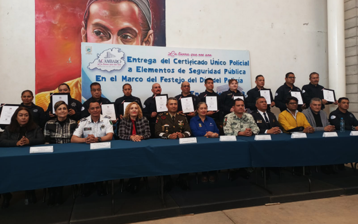 ACÁMBARO, Gto.- (OEM-Informex).- En el marco del Día del Policía, se llevó a cabo la entrega de certificado único policial a 41 elementos de Seguridad Pública Municipal.