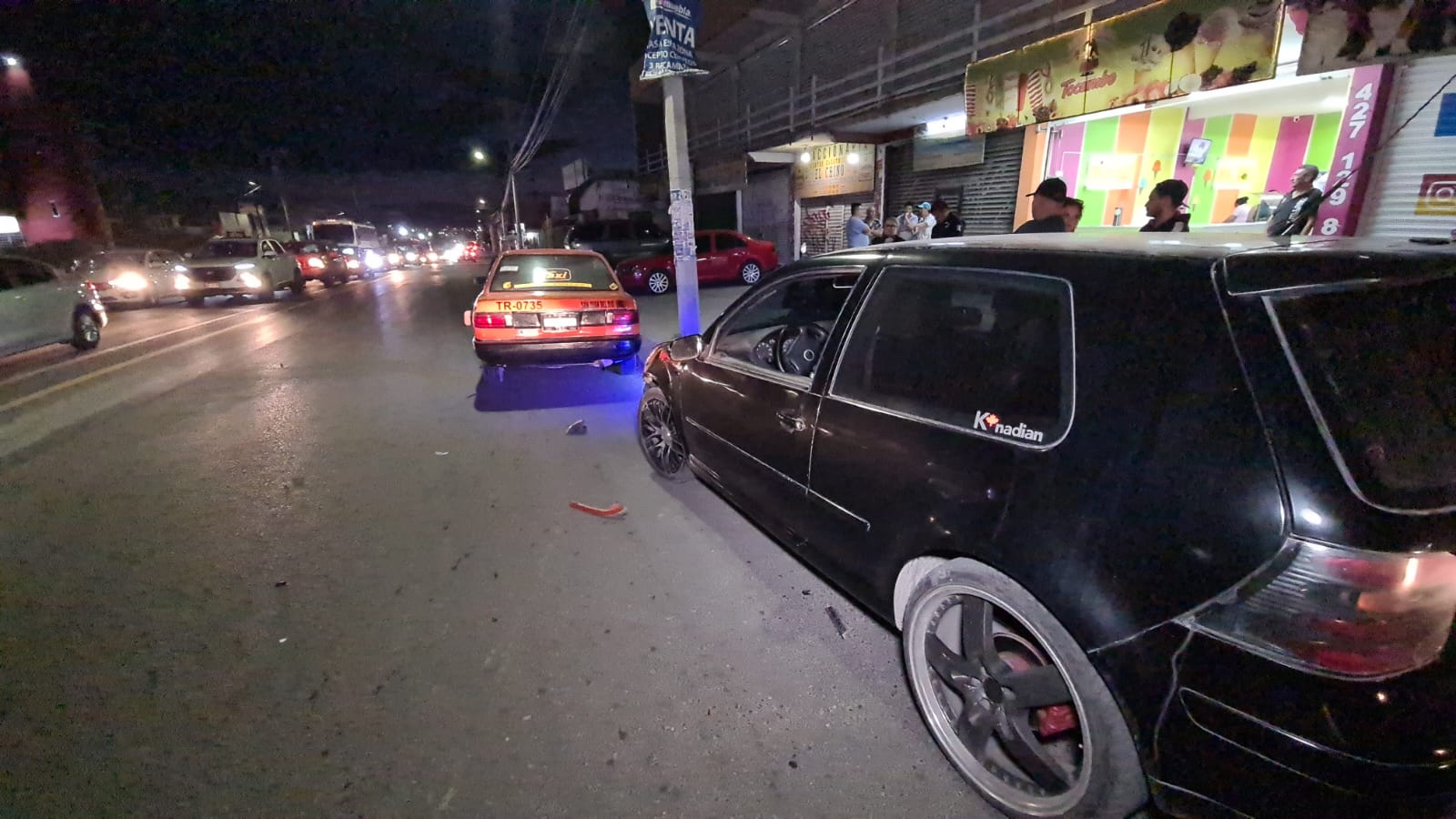 Se trató del auto marca Nissan tipo Tsuru, color naranja, con placas de circulación para el servicio público y el automóvil marca Volkswagen tipo Golf, color negro, con placas de circulación para este estado.