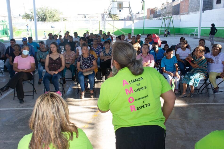 Con un resultado exitoso en cada colonia visitada, y con casos que ya fueron canalizados a las instancias estatales y municipales correspondientes, se desarrolla el programa “A.M.O.R.” (Alianza de Mujeres Organizadas por Respeto), encabezado por la Alcaldesa, Leonor Noyola Cervantes, quien estuvo el pasado lunes en la colonia San Antonio y este jueves, en el fraccionamiento San José del Barro.