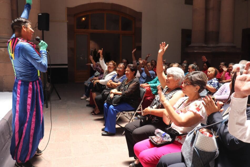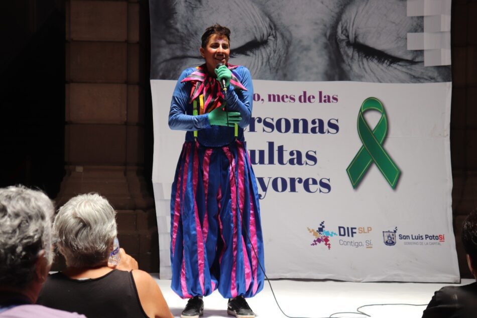 SLP.- Sonrisas, aplausos y la participación de personas adultas mayores se hicieron presentes durante la actividad del Cuentacuentos, la cual forma parte del programa de agosto, «Mes del Adulto Mayor» del DIF Municipal.