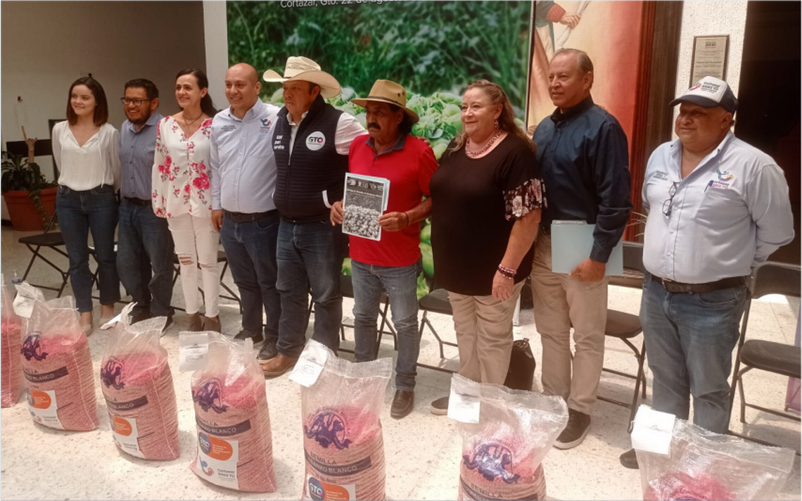 CORTAZAR, Gto.- (OEM-Informex).- Con recurso estatal, municipal y de beneficiarios, el presidente municipal Ariel Corona hizo entrega de semilla de garbanzo blanco a productores cortazarenses, como cultivo alternativo para aprovechar la humedad residual, debido a la irregularidad de las lluvias.