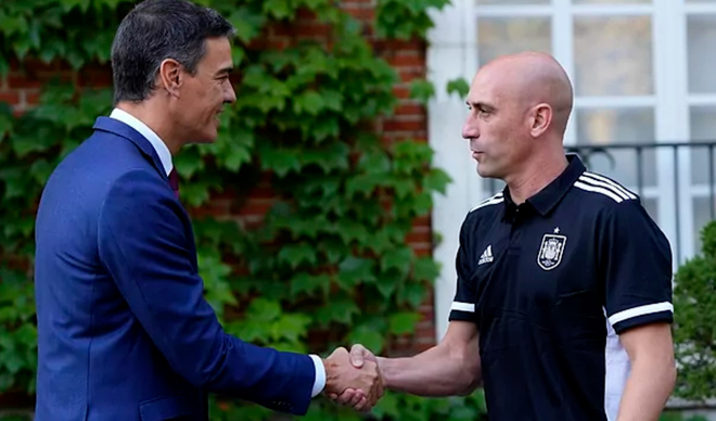 La expedicin de la seleccin femenina de ftbol ha acudido este martes por la maana a La Moncloa para celebrar junto al presidente del Gobierno Pedro Snchez el ttulo de campeonas del mundo logrado el domingo en Sdney. Un xito histrico que en las ltimas horas ha quedado algo empaado por las actuaciones de Luis Rubiales, presidente de la Federacin Espaola de Ftbol, durante la final de la Copa del Mundo. El mximo mandatario del ftbol espaol grit y salt en el palco, agarrndose los testculos; bes a Jenni Hermoso en la boca durante la recogida de las medallas y ms tarde, en El Partidazo de la Cope, llam “gilipollas”, “tontos del culo” y “pringaos” a todos los que le criticaban.