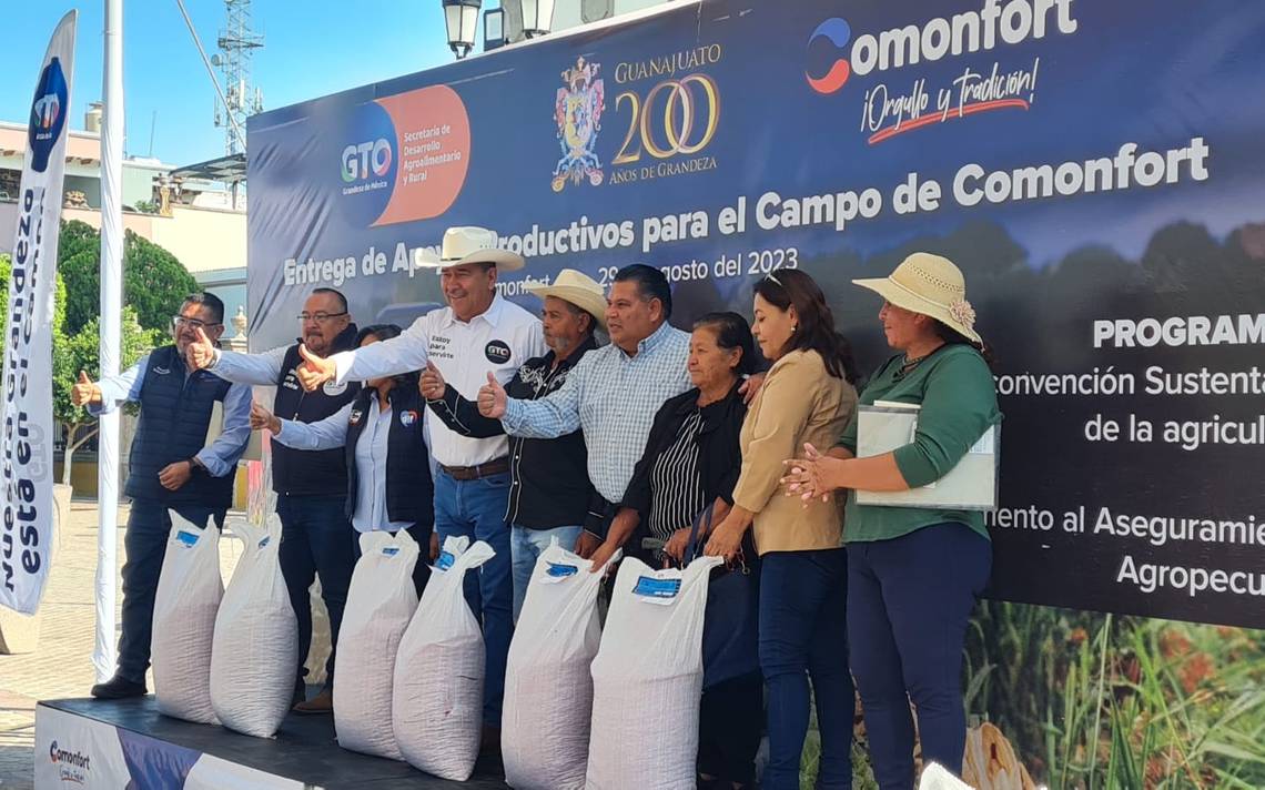 “Yo únicamente hago la gestión, el gobernador da el sí y aquí nuestro secretario lo refuerza trayendo los apoyos, no me queda más que felicitarlos a todos ustedes, yo sé que es poco y lo dijo Isidro en el campo se gasta mucho, pero en algo tenemos que contribuir y créanme que su servidor, con el apoyo de nuestro secretario, vamos a seguir trabajando con más beneficios aquí para el municipio de Comonfort y en especial para la gente del campo”, comentó el alcalde.