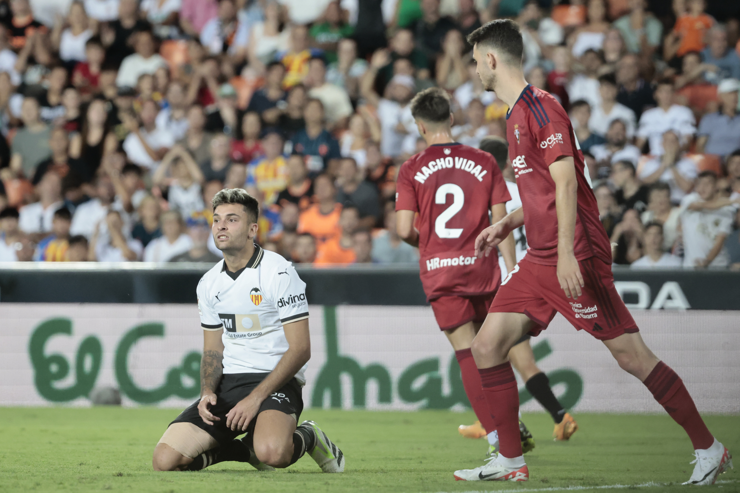 La carrera de Pablo Ibez burlando a los centrales valencianistas la quiso rectificar Thierry, pero el VAR avis a Pulido Santana de que no toc pelota en la atajada y el penalti lo convirti Aimar Oroz para engordar la mala estadstica de Mamardashvili. Con poco, haban inclinado el partido en 25 minutos. Lo dems fue ansa del Valencia y orden navarro. No haba forma de hilvanar jugadas que buscaran las cosquillas a los rojillos, al que le bast probar con otro remate de Catena. Aun as, el Valencia tuvo un disparo de Diakhaby desde fuera del rea y un centro de Javi Guerra desde la lnea de fondo que no enganch Hugo Duro.