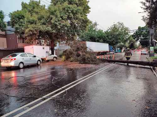 Al menos una decena de árboles caídos fueron reportados y varios encharcamientos, sobre todo en las alcaldías Tlalpan, Benito Juárez e Iztacalco; aquí, en la colonia Militar Marte.