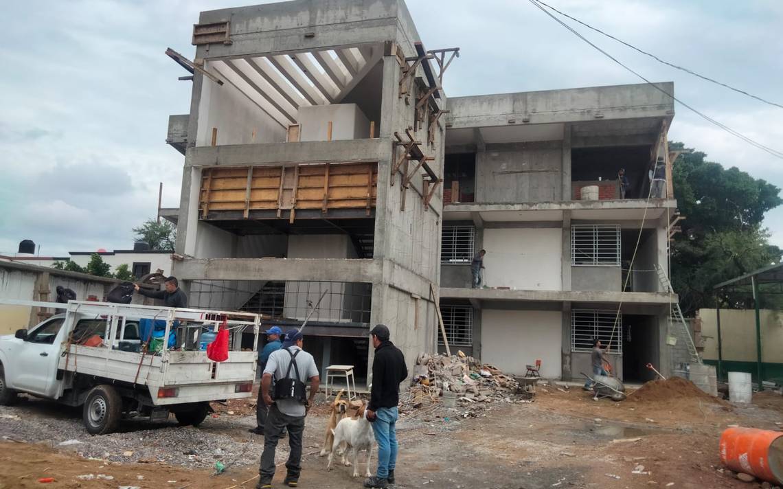 Hasta el momento, según una visita realizada con el permiso de los trabajadores, se tiene un importante avance en un edificio de tres pisos al fondo del predio, en donde antes estaba un auditorio y los salones de quinto y sexto grado.