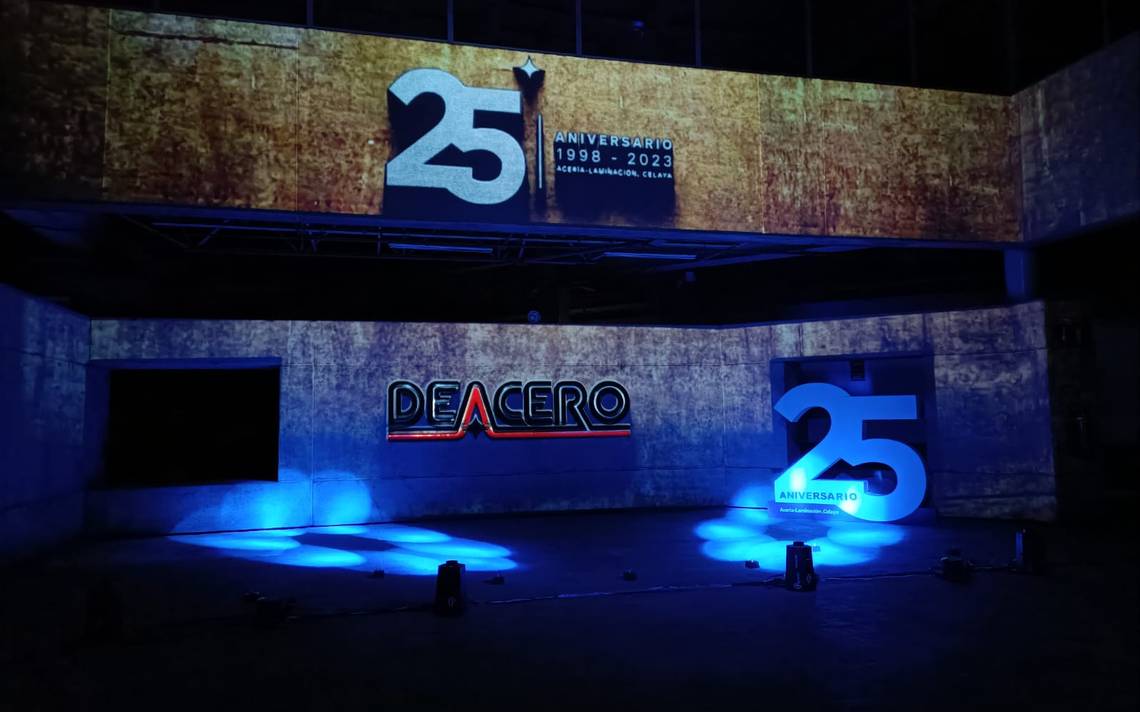 DeAcero realizó diferentes eventos para conmemorar los 25 años de la planta de acería y laminación en Celaya, entre ellos estuvo la reproducción del video mapping el cual tuvo lugar en la planta de acería.