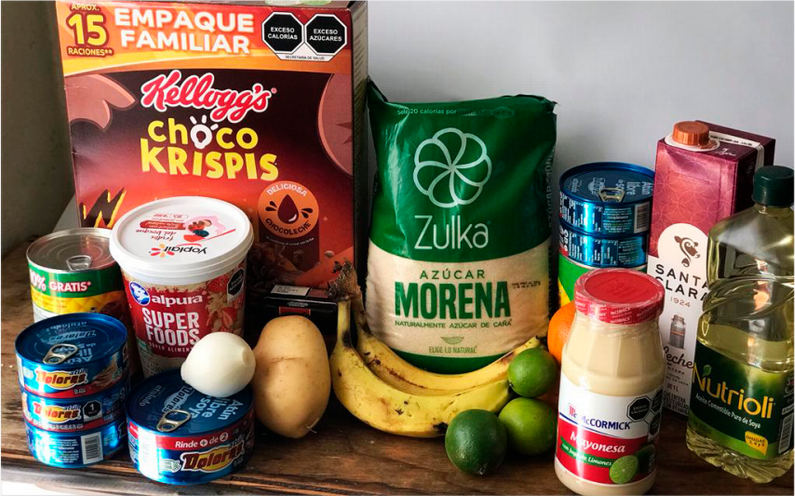 Tortillas de maíz 11.4%, pan para sándwich 10.9%, pan de dulce 10.3%, la leche 10.1%, el yogurt 9.9%, el pan blanco 9.6%, jugos y néctares preparados el 9.2%, refrescos el 9.1%, el pollo rostizado el 9.0%, el queso fresco el 8.6%, el chorizo y la longaniza 8.2%.