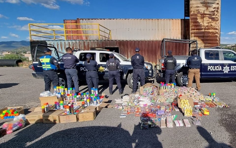 Elementos de la Policía Estatal (POES), en conjunto con la Coordinación Estatal de Protección Civil de Querétaro y dependencias del municipio de Querétaro, acudieron a tianguis y mercados de la capital, donde localizaron 550 kilos de pirotecnia.