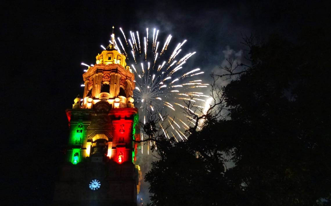 Después del tradicional grito, el cielo del primer cuadro de la ciudad se encendió de colores con el tradicional espectáculo de juegos pirotécnicos que tenían como marco central la Catedral de Morelia.