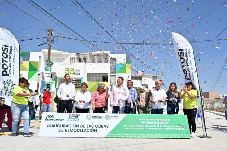 En un emotivo acto en que se demuestra que ¡Soledad ya despegó!, la Alcaldesa Leonor Noyola Cervantes, acompañada por el Gobernador del Estado, Ricardo Gallardo Cardona, hicieron realidad un nuevo espacio para vivir para las familias de la Unidad Habitacional El Marqués y El Laurel, con un área recreativa moderna y la rehabilitación de fachadas y pavimentación de calles.