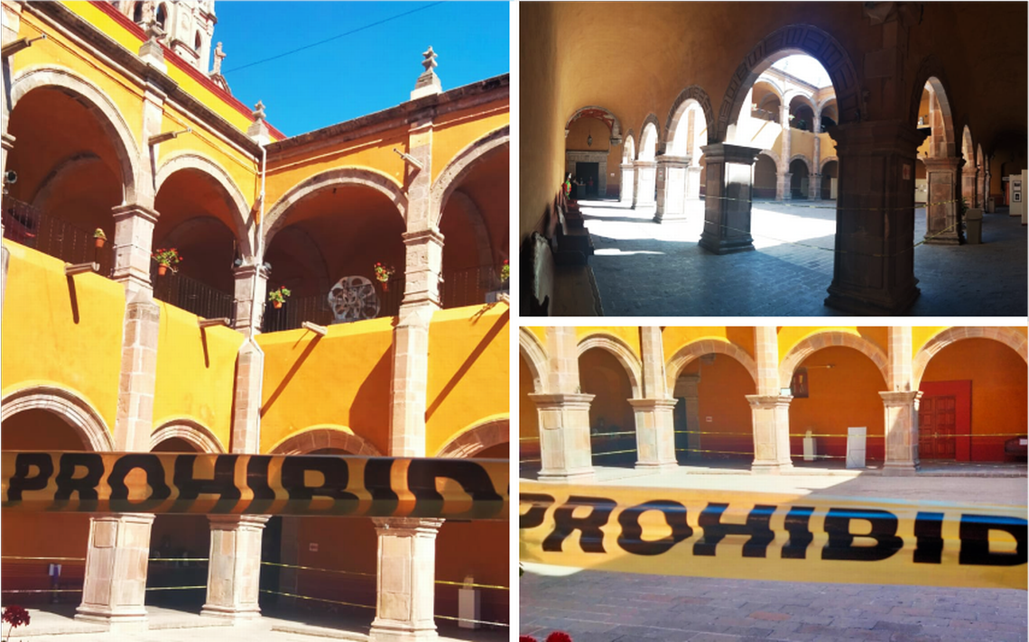 “El Instituto de Arte y Cultura de Celaya informó que, a partir de esa fecha y hasta nuevo aviso, queda inhabilitado el patio central de la Casa de la Cultura, a manera de prevención, debido al desprendimiento de una pequeña parte de la moldura de cantera, en la parte superior del inmueble. De la misma forma se acordonó una parte del paso peatonal sobre la calle Democracia, también a manera de prevención, debido al desprendimiento de una pequeña porción de lo que aparentemente son los acabados, en el muro exterior del inmueble.