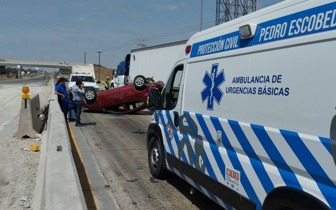 El conductor de un carro perdió el control luego de colisionar con otro vehículo terminó volcado en el carril de alta velocidad los hechos ocurrieron en el kilómetro aproximado 176 de la carretera México Querétaro a la altura de la desviación a El Sauz en el municipio de Pedro Escobedo.
