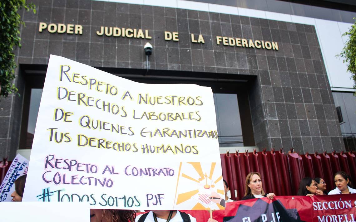 Morelia, Michoacán.- Por segundo día consecutivo, trabajadores del Poder Judicial de la Federación en el estado, se manifestaron contra el recorte de personal y beneficios laborales entre los que se encuentran seguro de gastos médicos mayores.