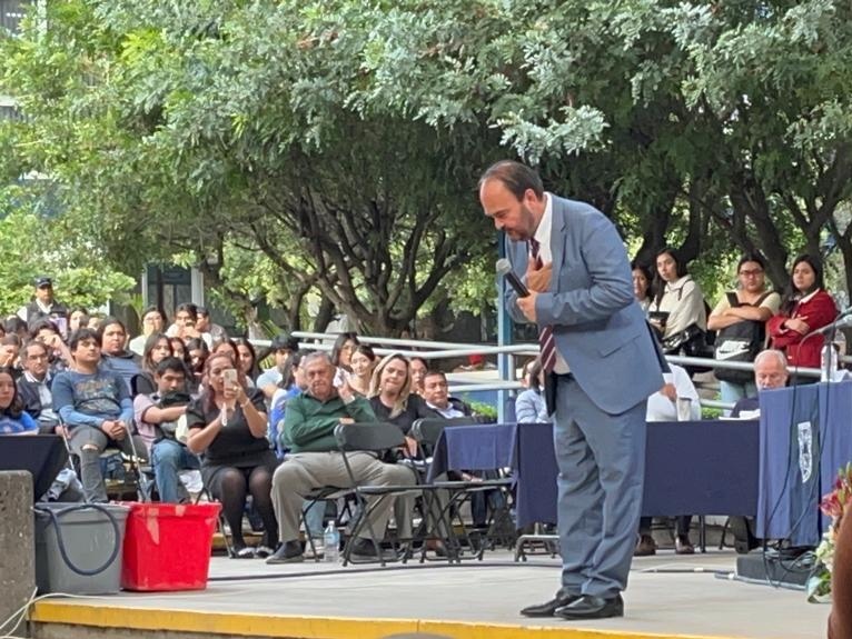 Lo anterior, lo manifestó con la voz entrecortada en el discurso que dirigió a la comunidad de la facultad en la que funge como director y a quienes les pidió no estar tristes con su desición.