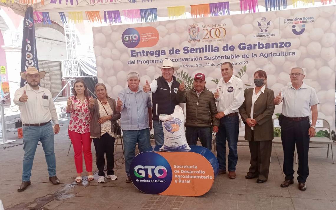 JUVENTINO ROSAS, Gto.- (OEM).- Un total de 165 familias de 28 comunidades rurales se vieron beneficiadas con la entrega de 20.5 toneladas de semilla de garbanzo, la que podrán sembrar para aprovechar la humedad residual, esto, dentro del programa Reconversión Sustentable de la Agricultura, con una concurrencia de recursos de gobierno estatal, a través de SDAYR, municipio y beneficiarios por 926 mil pesos.
