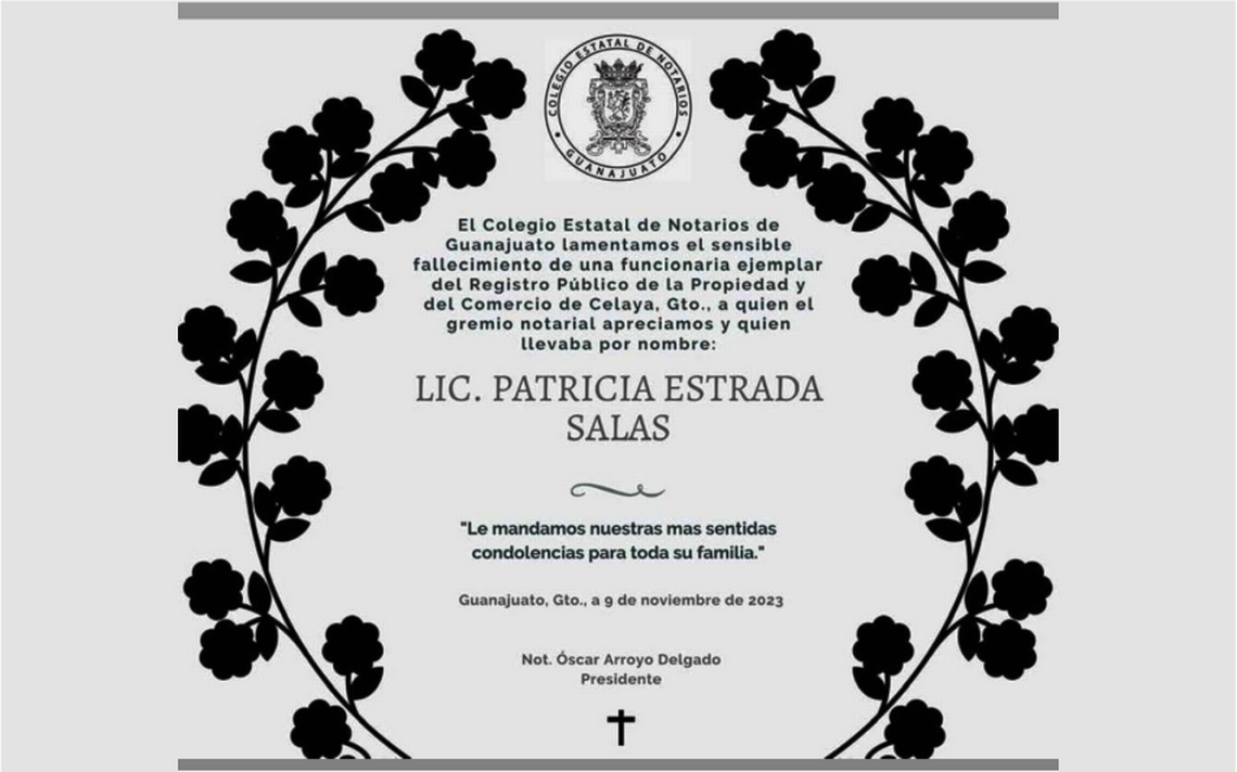 Mandó sus condolencias a la familia y fue firmada por el Notario Oscar Arroyo Delgado, presidente del colegio Navegación de entradas Hablan "extraordinario de México" en El Gran Bajío ¿Quién es Ricardo Sheffield? El expanista defensor de la 4T en Guanajuato
