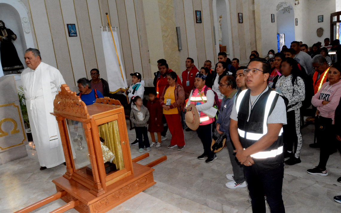 También realizó una oración para que la Virgen de San Juan de los Lagos los cuide y proteja de todo peligro durante su caminar rumbo a la basílica. Al salir de la parroquia, los peregrinos siguieron su camino hacia el Boulevard Adolfo López Mateos, resguardados por elementos de Protección Civil.