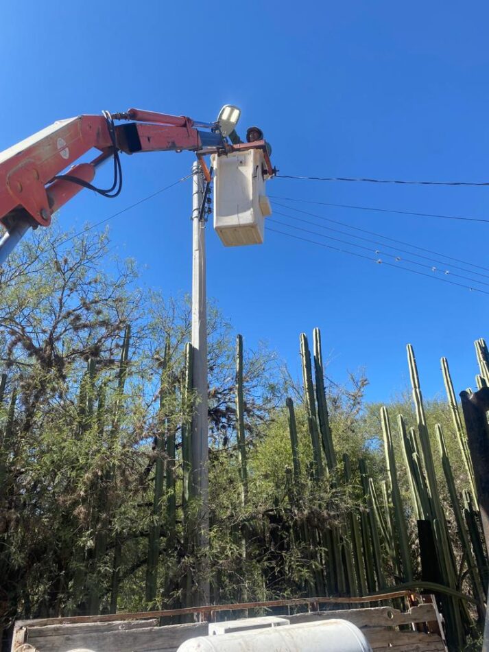 Otras acciones similares se llevaron a cabo en los poblados de Macarenos y Mezquite Quemado, por lo que ya se repusieron o repararon más de una docena de luminarias en tan sólo las cuatro localidades hasta el momento intervenidas.