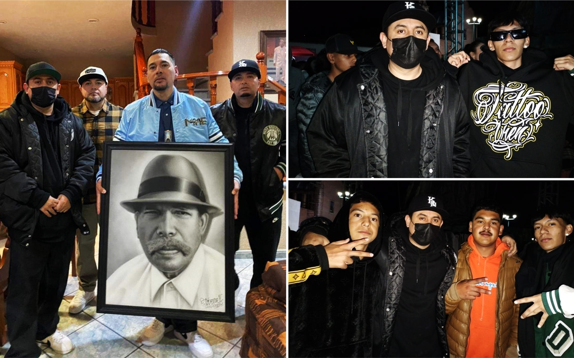 ACÁMBARO, Gto.- El conocido tatuador profesional de los artistas y cantante, Trenes Re estuvo en la comunidad de Irámuco para hacer entrega de una pintura con aerógrafo para Kinto Sol, en la obra se muestra el rostro del padre de los integrantes de este grupo de Hip-Hop.