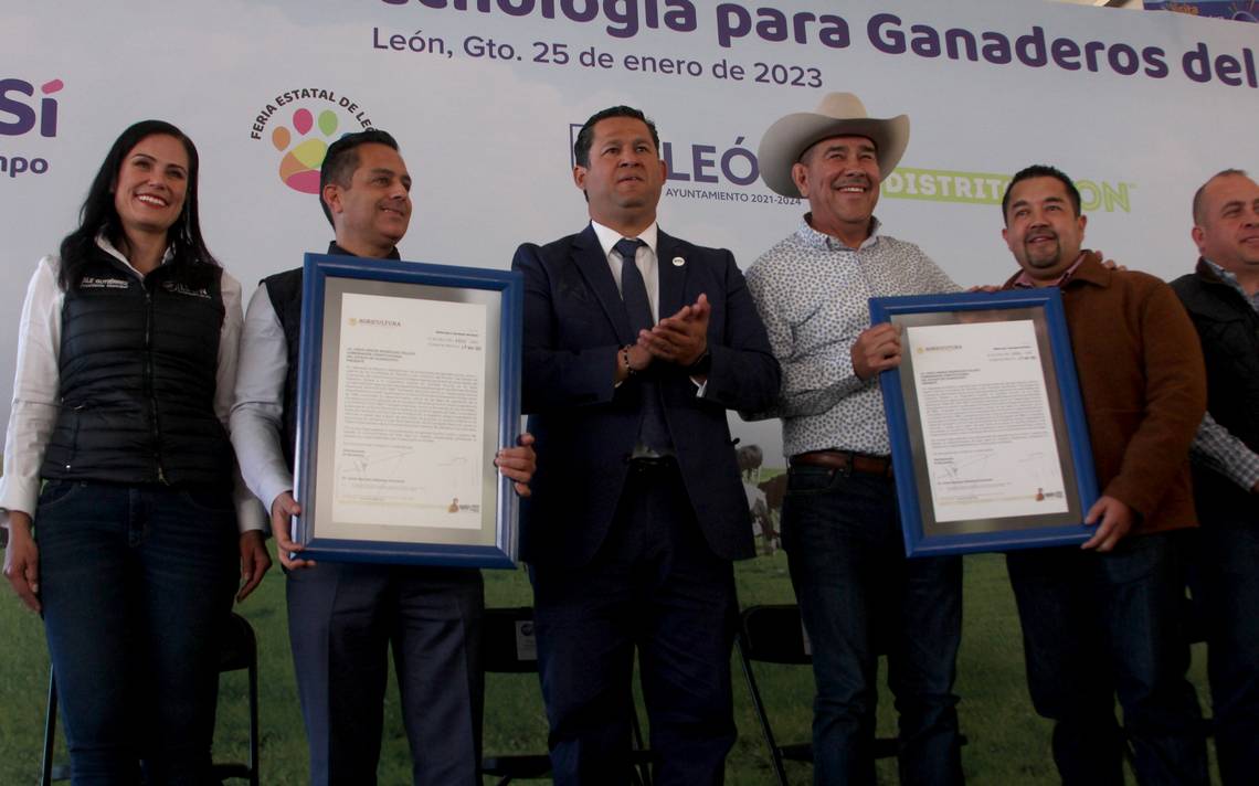 En representación de ganaderos de Romita y de San Francisco del Rincón, los presidentes Municipales, Oswaldo Ponce Granados y Antonio Marún González, recibieron un reconocimiento por la erradicación de tuberculosis y brucelosis en las unidades de producción ganadera.