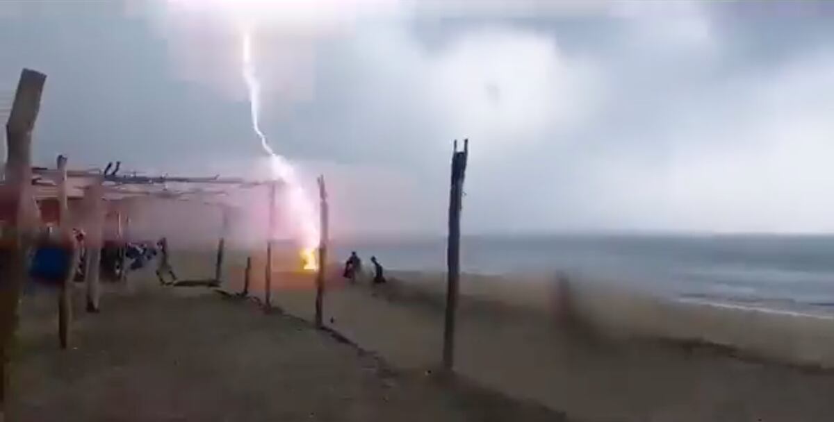 Dos personas fueron alcanzadas por un rayo cuando caminaban por la playa Maruata, en el municipio de Aquila, Michoacán. Un video en redes sociales captó el momento exacto de la descarga sobre la playa, ocurrido la tarde del lunes.