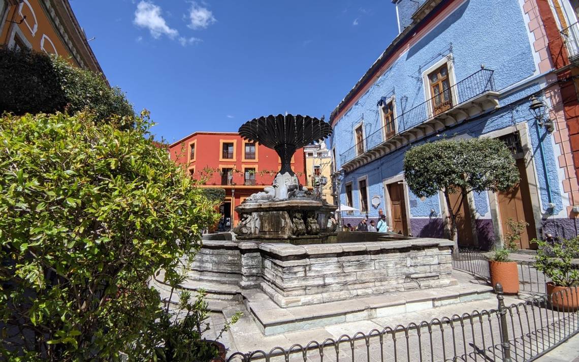 GUANAJUATO, Gto.- La Plazuela del Baratillo cuenta con una de las fuentes más hermosas, cuyo estilo florentino, tiene un pedestal que sostiene cuatro peces fantásticos de bronce característicos del siglo XIX.