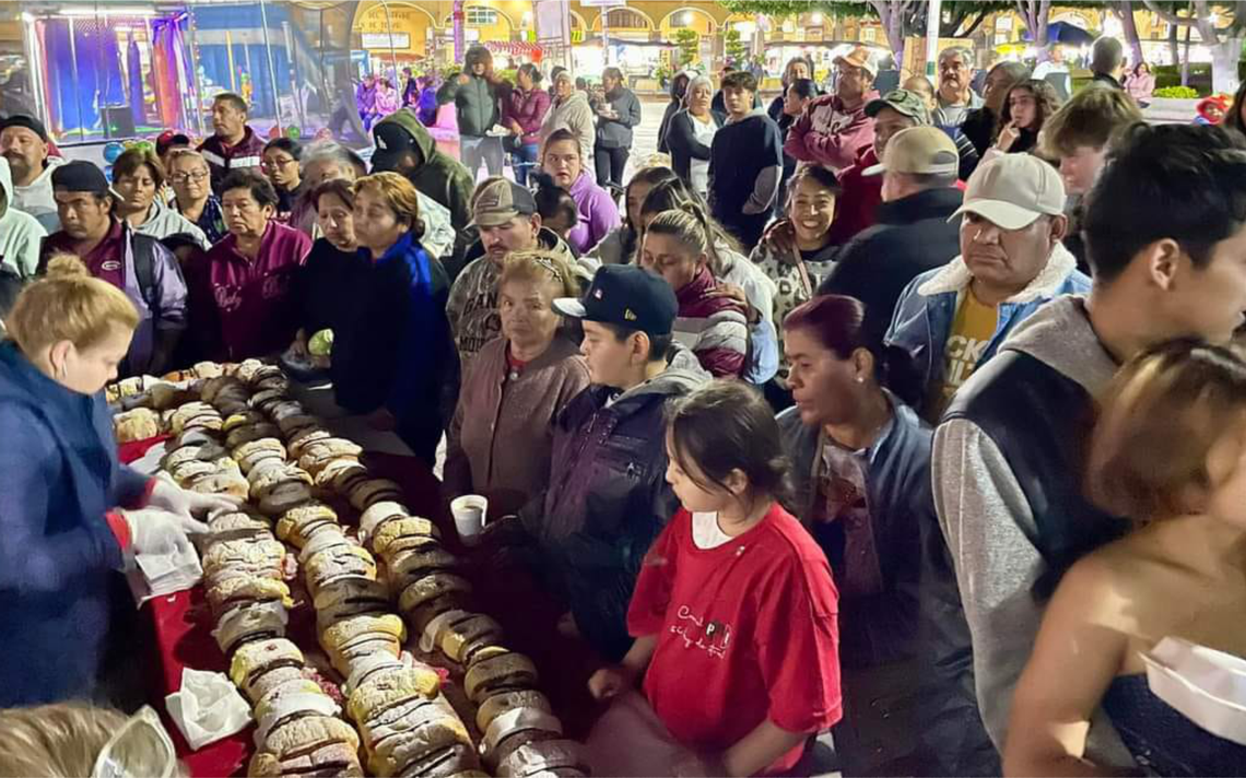 Acto seguido se hizo el reparto de porciones de la Mega Rosca a los presentes, acompañada de vasos chocolate caliente.
