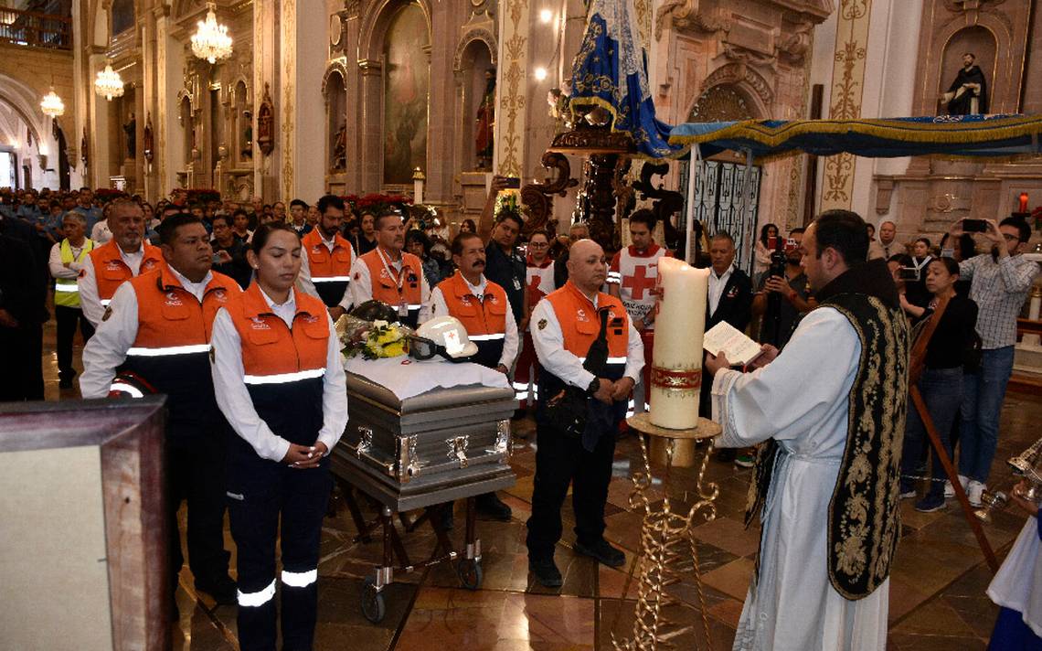 Recorrieron Benito Juárez e Hidalgo, hasta llegar a la Calzada Independencia, donde tragahumos y socorristas formaron una cadena humana por donde pasó el féretro hasta el templo y altar de San Francisco, donde familiares lo esperaban. También estuvieron presentes el alcalde Javier Mendoza Márquez, acompañado de su esposa Rosita Suárez; el secretario de Seguridad Ciudadana, Jesús Ignacio Rivera Peralta; la síndica Salud García Rodríguez y otros integrantes del Ayuntamiento.
