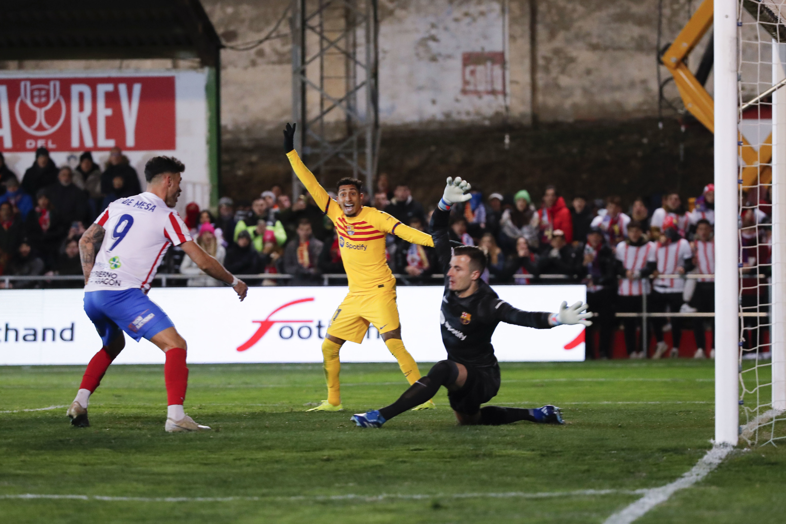 Los de Xavi respondieron con un segundo gol aparentemente llamado a dictar sentencia. Un gran centro del joven Hctor Fort, improvisado lateral izquierdo en la defensa barcelonista, fue enviado al fondo de la red por un Raphinha que hizo gala de una velocidad de vrtigo para poner el 0-2 en el marcador. La apariencia, no obstante, se fue al traste cuando Adri de Mesa, tras un saque de crner prcticamente regalado por Joao Flix y flirteando abiertamente con el fuera de juego, desat la euforia de la grada con 1-2 que le meta de lleno en el partido.