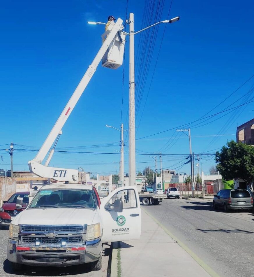 La seguridad en las calles a través de la iluminación digna, es una prioridad del Ayuntamiento de Soledad de Graciano Sánchez, por ello, el área de Alumbrado Público refuerza un intensivo trabajo en la rehabilitación y colocación de lámparas nuevas, enfocándose en mejorar la visibilidad nocturna y otorgar mayor protección a las y los habitantes del municipio.