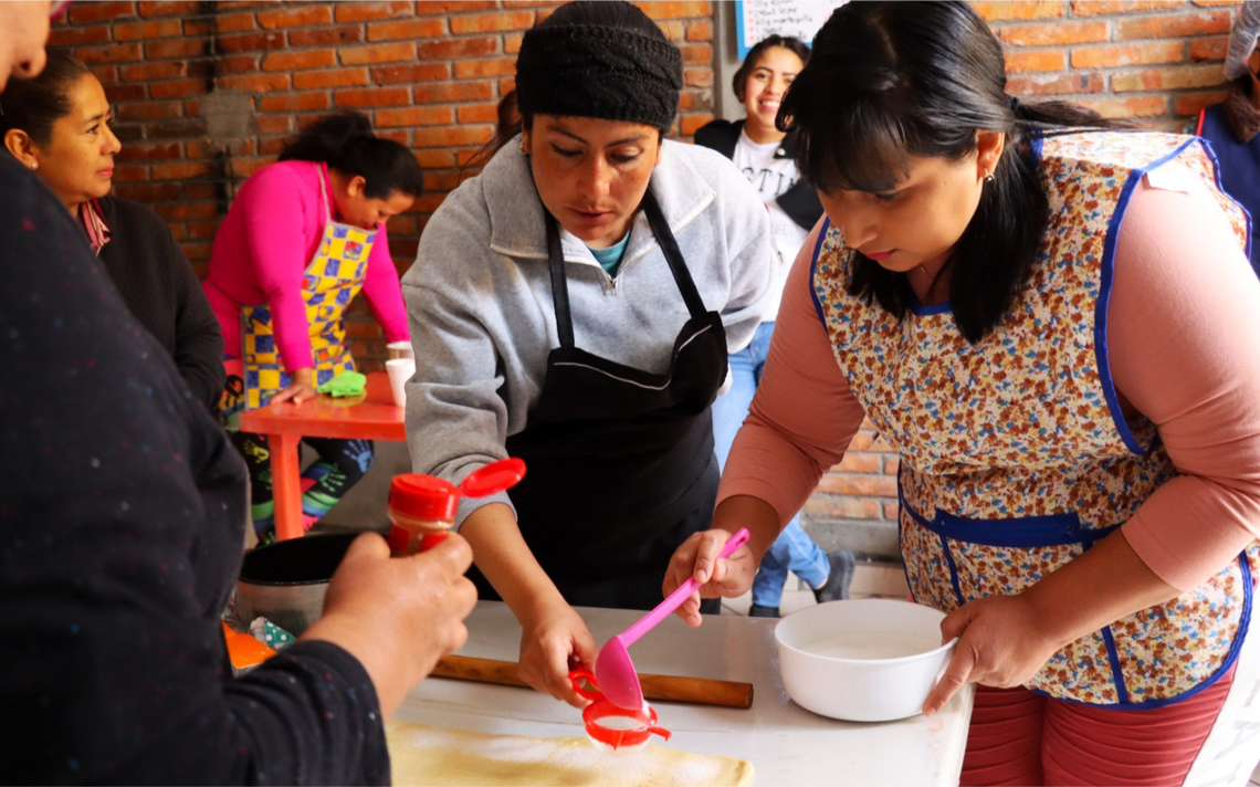 Las mujeres que participan en la dinámica de “Juntas Podemos”, antes de capacitarse en el taller que esté disponible, reciben una capacitación en donde se les empodera y reconocen el valor que tienen como personas, además, aprenden sobre los tipos de violencia con el violentómetro y en caso de que identificar alguno para sí mismas, reciben la atención que requieran.