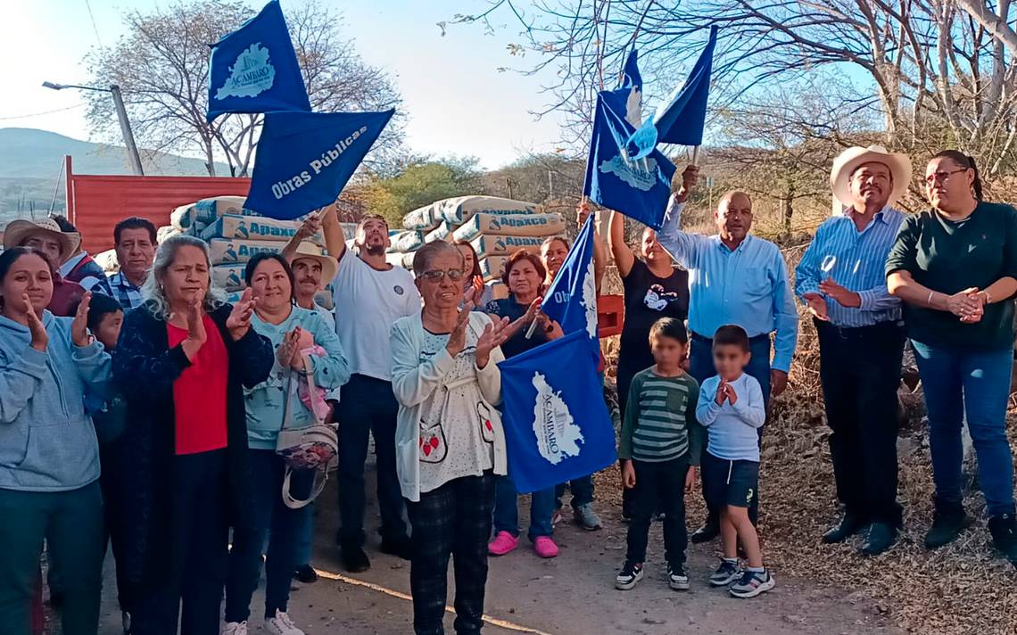 Por otro lado, en San Francisco Parácuaro se entregó material de construcción para la pavimentación de la calle Del Trabajo, el cual durante la temporada de lluvias se generan una cantidad importantes de charcos que impiden que las personas puedan transitar por ella, además que cuando se registran fuertes lluvias el agua se estanca y se mete a los domicilios provocando daños en sus muebles.