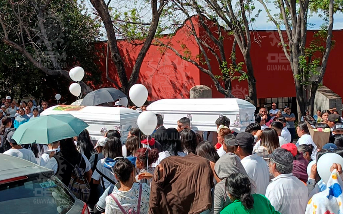 La familia desconsolada caminó con los féretros blancos. Uno de ellos tenía una imagen de la Virgen de Guadalupe, acompañados de música de mariachi, un grupo de locos y una rodada motociclista acompañó a los cuerpos al panteón de Nuestra Señora de Guadalupe.