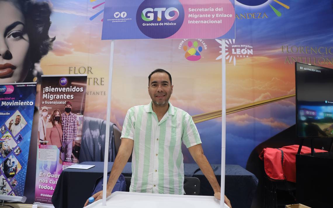 Efraín Palomino Morales, se encuentra en el stand en la Feria Estatal de León ubicado en el tercer nivel, explicó que la Secretaría del Migrante y Enlace Internacional es la dependencia de Gobierno del Estado que brinda atención a los migrantes y a sus familias.