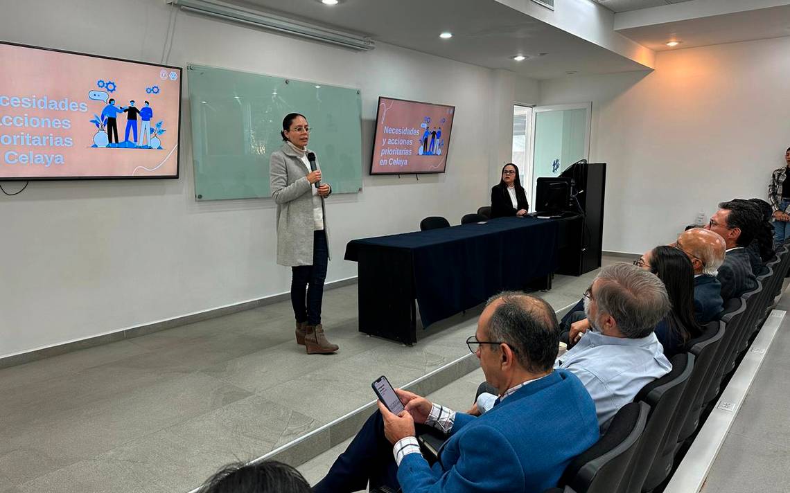 Ana Cuevas Romo, líder de investigación de la Universidad de Celaya, presentó ante el alcalde, representantes de medios de comunicación y los integrantes de los organismos ciudadanos los principales resultados de las mesas de trabajo.