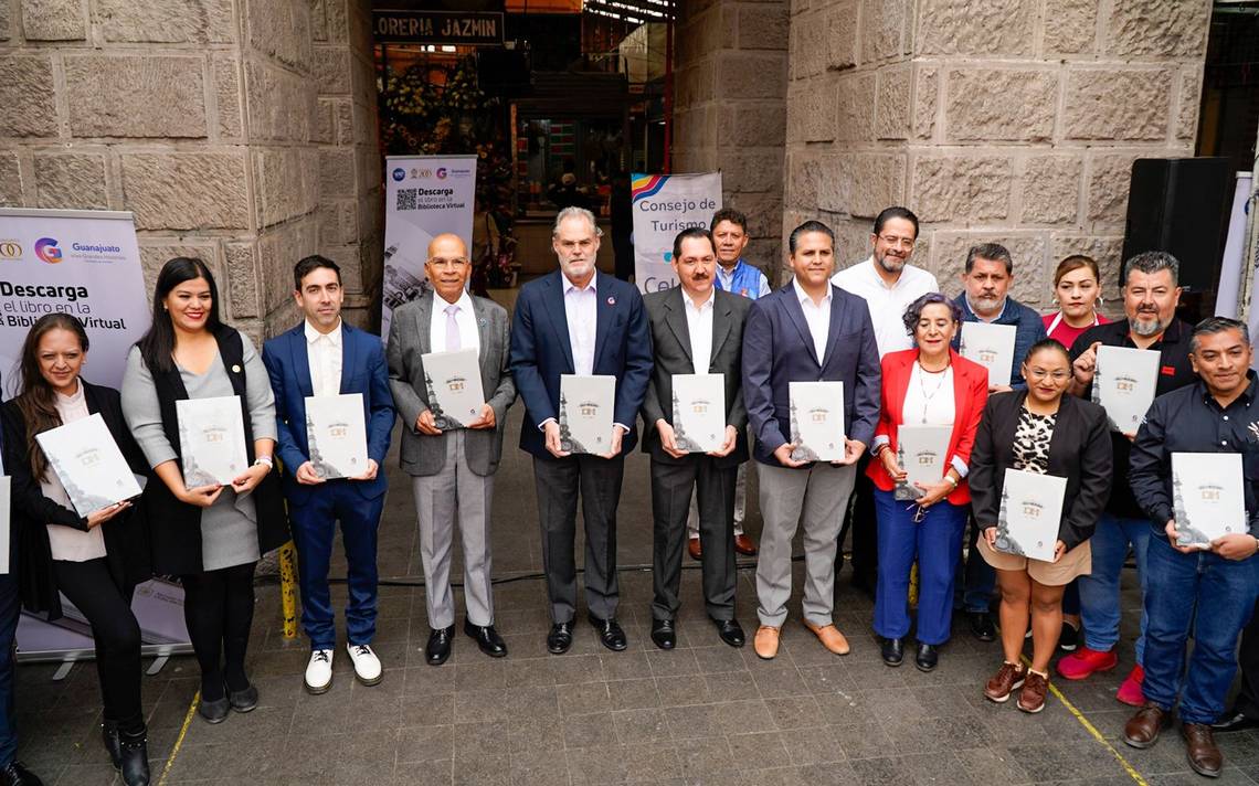 La presentación se realizó en el acceso principal del Mercado Morelos, bajo la gran torre que lo distingue, encabezada por el presidente municipal Javier Mendoza Márquez y Juan José Álvarez Brunel, secretario de Turismo del Estado de Guanajuato, así como colaboradores en la investigación y desarrollo del documento, comerciantes, líderes de sectores sociales y público que se dieron cita.