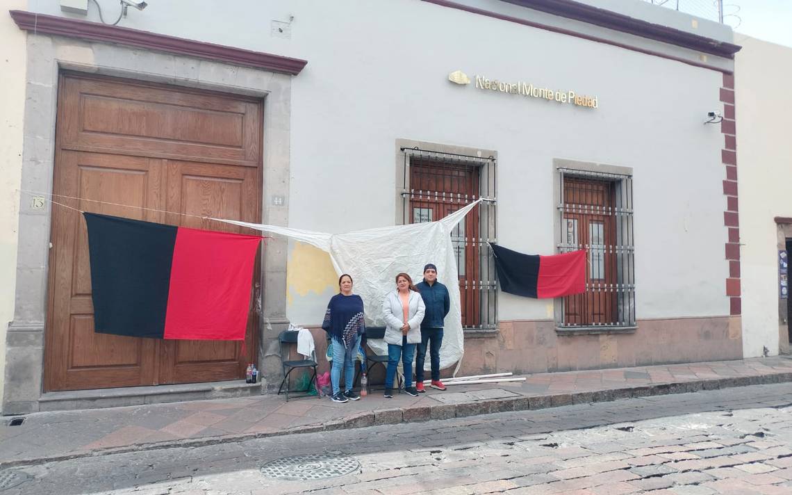 Son 41 empleados pertenecientes a las seis sucursales del estado de Querétaro, los que colocaron la bandera rojinegra en las puertas para unirse a la huelga del Nacional Monte de Piedad al minuto uno de este jueves 15 de febrero.