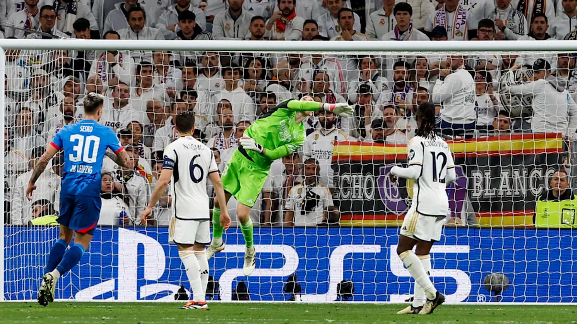 La bveda del Bernabu se estren en la Champions para alimentar un ambiente que se aventuraba de baja intensidad por el resultado favorable cosechado en la ida, en el Red Bull Arena de Leipzig. El objetivo era multiplicar los decibelios para recrear la coreografa de las grandes noches en un da especial: el 122 aniversario de club dominador de Europa. El recibimiento al autobs de los jugadores fue atronador, como en las jornadas de las picas remontadas. Todo preparado para una fiesta que result menos lustrosa de lo esperado debido a la incmoda visita de un Leipzig, que no se acomplej en un escenario diseado para intimidar. Los fantasmas del Centenariazo del Deportivo y de la exhibicin de Ajax en 2019 se pasearon por el coliseo blanco en otro 6 de marzo.