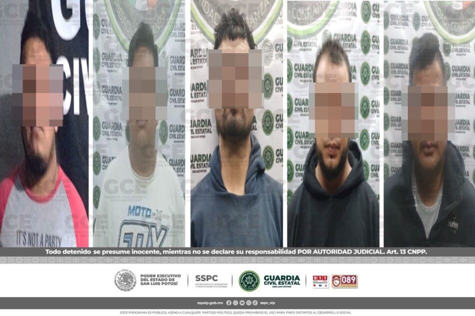 S.L.P.- Diferentes llamadas de auxilio atendidas en la Línea de Emergencias 911, permitieron la detención de cinco hombres, por autoridades de la Guardia Civil Estatal (GCE), luego de que las personas agraviadas indicaran que procederían legalmente en su contra, por violencia familiar.